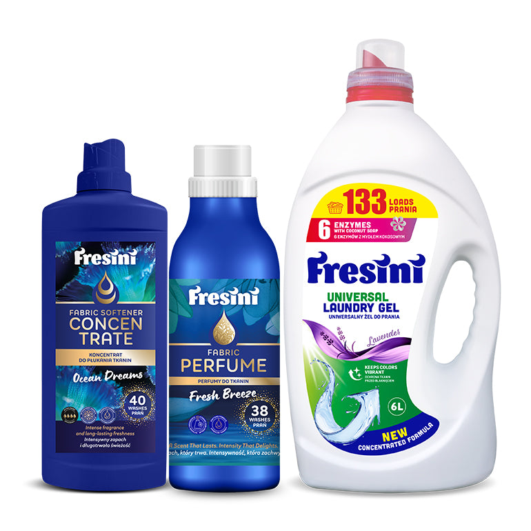 Pachet 3 in 1 FRESINI, detergent, balsam si parfum pentru tesaturi